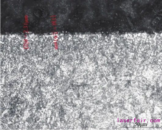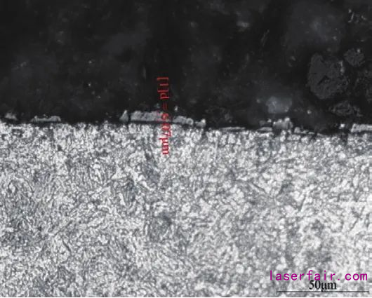 氣進行氣氛保護,氧化皮厚度一般在5μm左右(圖7)。而用真空爐制備的零件,其氧化皮厚度一般小于2μm(圖8)。