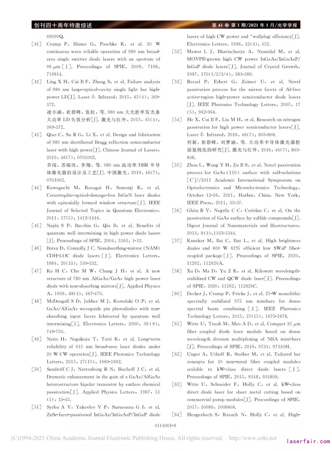 本文針對(duì)大功率半導(dǎo)體激光的常用技術(shù)進(jìn)行了總結(jié)介紹,主要包括邊大功率發(fā)射半導(dǎo)體激光芯片和大功率半導(dǎo)體激光合束技術(shù)。大功率半導(dǎo)體激光器的應(yīng)用范圍幾乎涵蓋了所有光電子領(lǐng)域。進(jìn)一步發(fā)展大功率半導(dǎo)體激光技術(shù)對(duì)于推動(dòng)我國光電子領(lǐng)域?qū)W科發(fā)展、推動(dòng)我國激光產(chǎn)業(yè)發(fā)展、推動(dòng)國民經(jīng)濟(jì)升級(jí)轉(zhuǎn)型,有著重要科研、經(jīng)濟(jì)以及戰(zhàn)略意義。