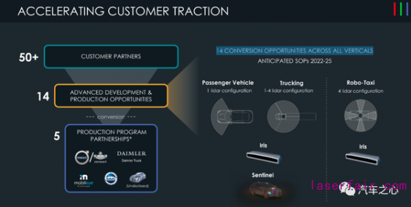 從降本和量產(chǎn)兩個(gè)維度看,Luminar 當(dāng)前手里超過(guò) 13 億美金的訂單,也是 13 億美元的賭局。但好消息是,越來(lái)越多的客戶相信 Luminar 能夠量產(chǎn),這些客戶加入也在為量產(chǎn)化的資金、測(cè)試等方面持續(xù)加碼。