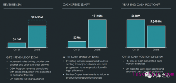 按照 Luminar 的規(guī)劃,2021 年其現(xiàn)金支出規(guī)劃是 1.4 億美元,算下來(lái)后面三個(gè)季度還有 1.1 億美元可以花。