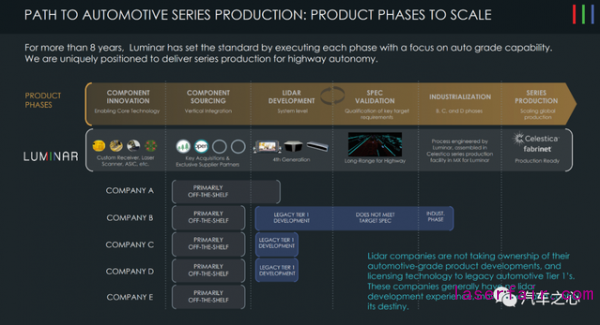 在激光雷達(dá)量產(chǎn)上車已經(jīng)成為確切未來(lái)的大背景下,像 Luminar 這樣的激光雷達(dá)公司將成為智能汽車時(shí)代不可或缺的零部件供應(yīng)商。這些公司都在圍繞著量產(chǎn)進(jìn)行充足的準(zhǔn)備,無(wú)論是硬件本身、還是配套的軟件,亦或是生產(chǎn)設(shè)施的搭建,各家都是明爭(zhēng)暗奪。