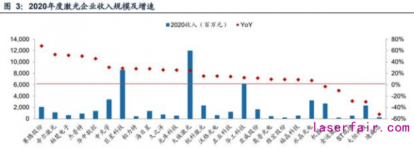 受益于制造業(yè)投資的回升,2020年度,80%的激光上市公司收入保持增長(zhǎng)。其中增 速較高的公司,例如賽騰股份、帝爾激光與柏楚電子等,都是偏應(yīng)用層面的,為客 戶提供解決方案,直接受益于下游擴(kuò)產(chǎn)或技術(shù)路演的改變。