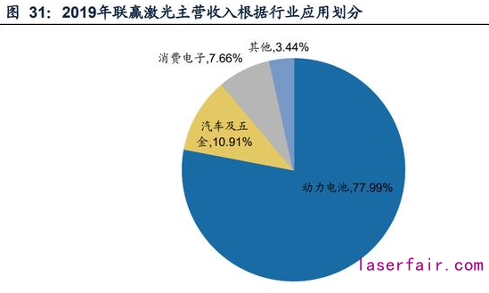 在低端加工市場(chǎng)以性價(jià)比取勝,高端制造上突破傳統(tǒng)焊接工藝局限。激光焊接在低 端和高端加工市場(chǎng)上均有廣泛應(yīng)用。其中,在低端市場(chǎng)的主要產(chǎn)品為手持激光焊, 機(jī)器小巧、操作方便,可以實(shí)現(xiàn)復(fù)雜不規(guī)則的焊接工序,主要用于焊接3mm以下金 屬和非金屬的板材,應(yīng)用領(lǐng)域?yàn)殁k金、廚具、衛(wèi)浴、五金等輕工行業(yè)。在高端市場(chǎng) 上滿足下游廠商對(duì)于自動(dòng)化、安全性、精密性、產(chǎn)品良率、加工效率等的需求,具 有傳統(tǒng)焊接工藝無(wú)法企及的焊接效果,多用于動(dòng)力電池、汽車(chē)、消費(fèi)電子行業(yè)。