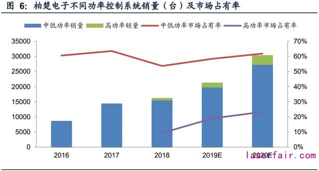 在數(shù)控系統(tǒng)領(lǐng)域,柏楚電子市占率國內(nèi)企業(yè)第一。在中低功率市場領(lǐng)域,國產(chǎn)激光運動控制系統(tǒng)已占據(jù)主導地位,而柏楚電子在中低功率市占率60%, 其產(chǎn)品在穩(wěn)定性、可靠性、精度、速度、易用性等方面占優(yōu)。在高功率激光切割系 統(tǒng)控制領(lǐng)域,國際廠商占據(jù)優(yōu)勢,主要知名企業(yè)包括德國倍福、德國PA、西門子等, 柏楚高功率產(chǎn)品的技術(shù)指標和使用性能為國內(nèi)領(lǐng)先水平。18年公司在國內(nèi)高功率激 光切割控制系統(tǒng)領(lǐng)域的市場占有率約9%??紤]到19年和20年公司總線系統(tǒng)銷售數(shù)量 分別增長319%和212%,我們預計公司20年高功率系統(tǒng)市占率有望超過20%。