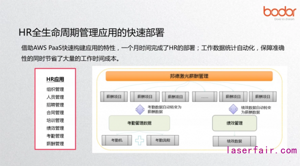 圖片來源:韓澤演講PPT《AWS PaaS 助力邦德激光營銷&HR管理全面升級》