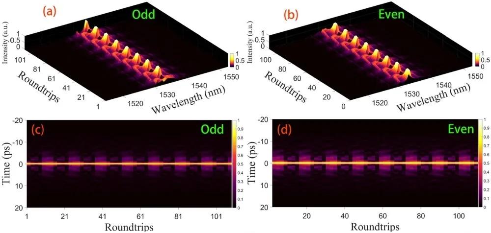 鎖模光纖激光器是工業(yè)、科學(xué)和生物醫(yī)學(xué)應(yīng)用中許多光學(xué)系統(tǒng)的基本器件。 迄今為止,已經(jīng)開發(fā)了1-2 μm的鎖模光纖激光器; 然而,在可見光區(qū)(380-760 nm)被動鎖模光纖激光器從未有過報道。 在此,鄒金海等人 提出并實現(xiàn)了一種波長為 635 nm的可見光被動鎖模全光纖激光器。 首先,通過求解金茲堡-朗道方程,研究人員 從理論上預(yù)測和分析了工作在耗散孤子共振區(qū)的635 nm被動鎖模氟化物 光纖激光器的脈沖形成和演化。 然后,在全光纖“8”字腔中,采用 Pr 3+ /Yb 3+共摻氟化物光纖作為可見光增益介質(zhì)以及非線性放大環(huán)鏡作為鎖模元件,實現(xiàn)了 中心波 長約為635 nm的矩形耗散孤子共振脈沖的穩(wěn)定產(chǎn)生, 它 具有超窄的光譜帶寬(< 0.1 nm)、可調(diào)脈沖持續(xù)時間為96-1298 ps、 信噪比為67 dB及重復(fù)頻率為 3.8713 MHz。 此外,通過調(diào)整腔內(nèi)偏振狀態(tài),研究人員還觀察到波長為635 nm的 類噪聲脈沖運轉(zhuǎn), 具有590-1434 ps脈沖持續(xù)時間和寬 調(diào)制光譜(> 1 nm) 的635 nm類噪聲脈沖 。 這項工作代表了一種重要的可見光譜范圍內(nèi)的超快激光器 ,在激光材料加工、可見光通信和通過 倍頻直接產(chǎn) 生超快紫外方面有著多種潛在應(yīng)用。 該工作發(fā)表在 Light: Science & Applications 上。