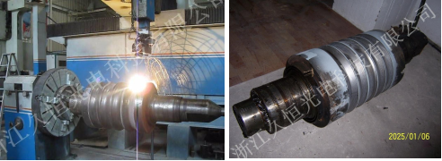 精軋輥齒輪軸承位激光修復(fù):總重 20 噸,待軸承位直徑 670mm,寬度 230mm,厚度 0.45mm。激光熔覆后無形變、氣孔、裂紋等,耐磨性、耐蝕性優(yōu)于母材,使用效果良好。