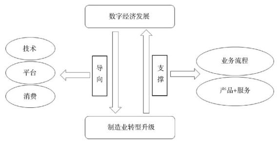 圖2 數(shù)字經(jīng)濟(jì)發(fā)展與制造業(yè)轉(zhuǎn)型升級(jí)雙向影響框架