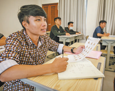中老鐵路運營期招聘的首批老撾籍學(xué)員參加第一期鐵路專業(yè)培訓(xùn)。