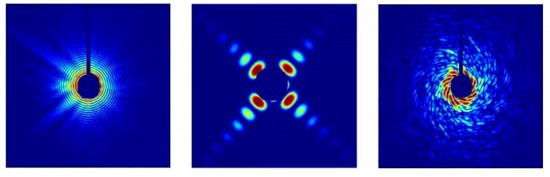標(biāo)準(zhǔn)樣品圓孔、方孔及鸚鵡螺圖案的相干衍射圖樣(上海科技大學(xué)供圖)