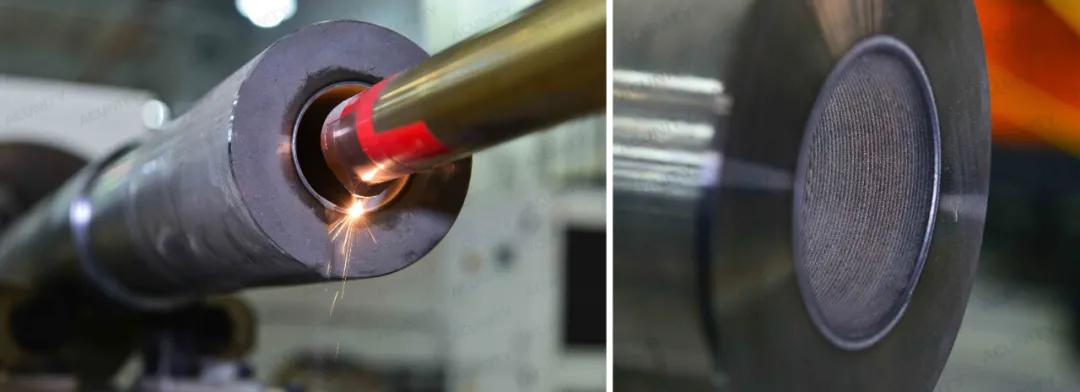 一些細(xì)小孔徑的模具產(chǎn)品,限制了傳統(tǒng)內(nèi)壁堆焊設(shè)備的進(jìn)入。亞琛聯(lián)合科技(天津)有限公司采用自主研發(fā)適用于小孔徑零件的內(nèi)壁激光熔覆頭,成功實(shí)現(xiàn)了零件內(nèi)壁的高性能耐蝕耐磨涂層制備,極大提高了產(chǎn)品在復(fù)雜工況下的服役壽命。