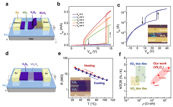 (b) V5S8-VO2-V5S8異質(zhì)結(jié)器件的變溫電學(xué)測試;