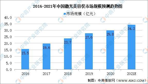 現(xiàn)代激光技術(shù)應(yīng)用于美容皮膚科學(xué)的治療領(lǐng)域,是近年來我國(guó)皮膚科專業(yè)內(nèi)突破性的發(fā)展之一,在短短的十年左右時(shí)間,激光技術(shù)已經(jīng)形成了一套較完整的理論體系和臨床實(shí)踐,成為美容皮膚科主要的治療手段之一。數(shù)據(jù)顯示,2020年我國(guó)激光美容儀市場(chǎng)規(guī)模達(dá)29.8億元,預(yù)計(jì)2021年我國(guó)激光美容儀市場(chǎng)規(guī)模可達(dá)34.2億元。