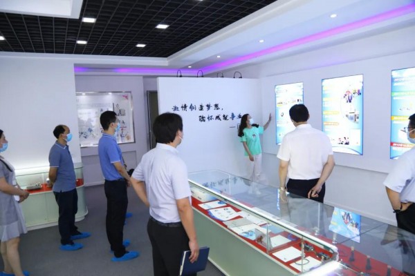20周年陳列室內(nèi),在講解員生動地介紹下,市科技局領(lǐng)導(dǎo)一行對金海創(chuàng)科技的產(chǎn)業(yè)布局、發(fā)展歷程及企業(yè)文化有了更進(jìn)一步的了解。