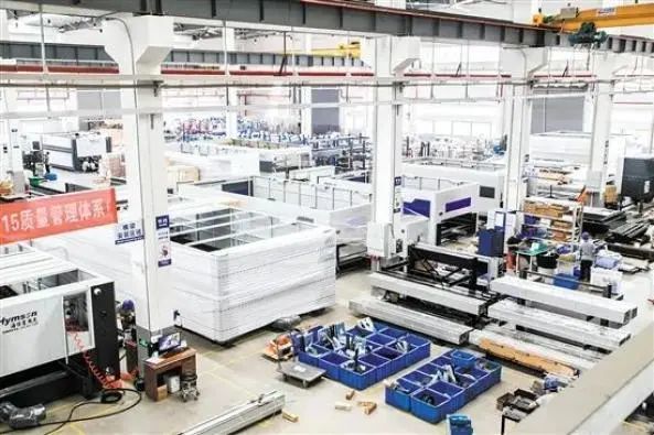 海目星(江門)激光智能裝備有限公司是蓬江區(qū)產(chǎn)業(yè)集群骨干企業(yè)代表。圖為該公司車間