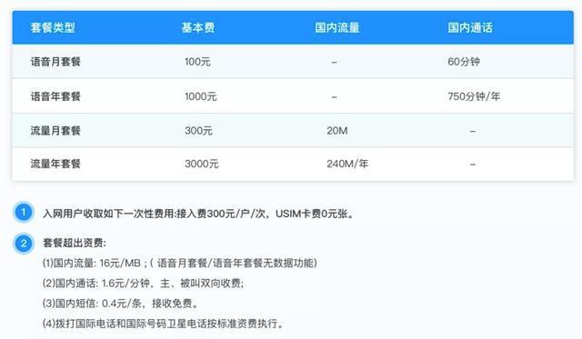 來到國內(nèi),電信衛(wèi)通每年 750 分鐘語音通話收費(fèi) 1000 元,240MB 流量收費(fèi) 3000 元。超出部分每分鐘 1.6 元,每 MB 流量 16 元。