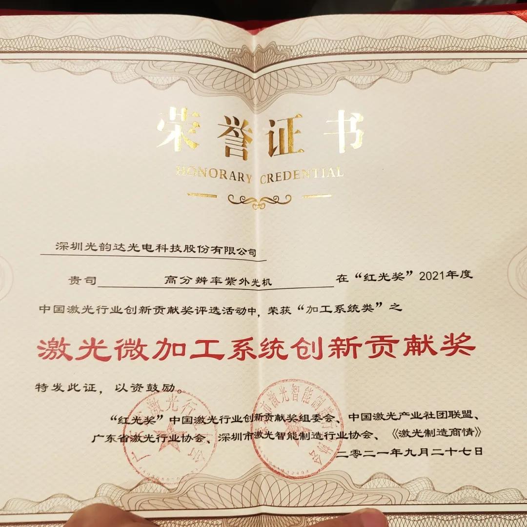 光韻 達(dá)高分辨率紫外光機榮獲“ 紅光獎” 激光微加工系統(tǒng)創(chuàng)新貢獻獎。