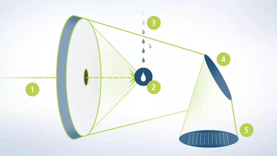 不斷滴下的錫珠被激光束擊中成為一個發(fā)光的等離子體,發(fā)射出波長為 13.5 nm 的 EUV 光;