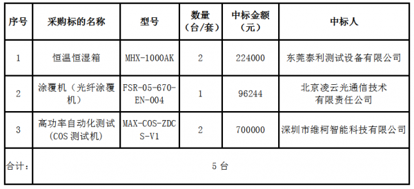 創(chuàng)鑫激光超高功率光纖激光器研發(fā)及產(chǎn)業(yè)化項目設備中標公告
