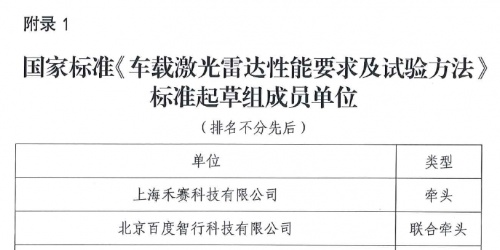 首個車載激光雷達(dá)國家標(biāo)準(zhǔn)開始起草 禾賽科技、百度等企業(yè)牽頭