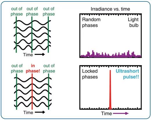 圖 3 激光頻率的相位鎖定產(chǎn)生超短脈沖