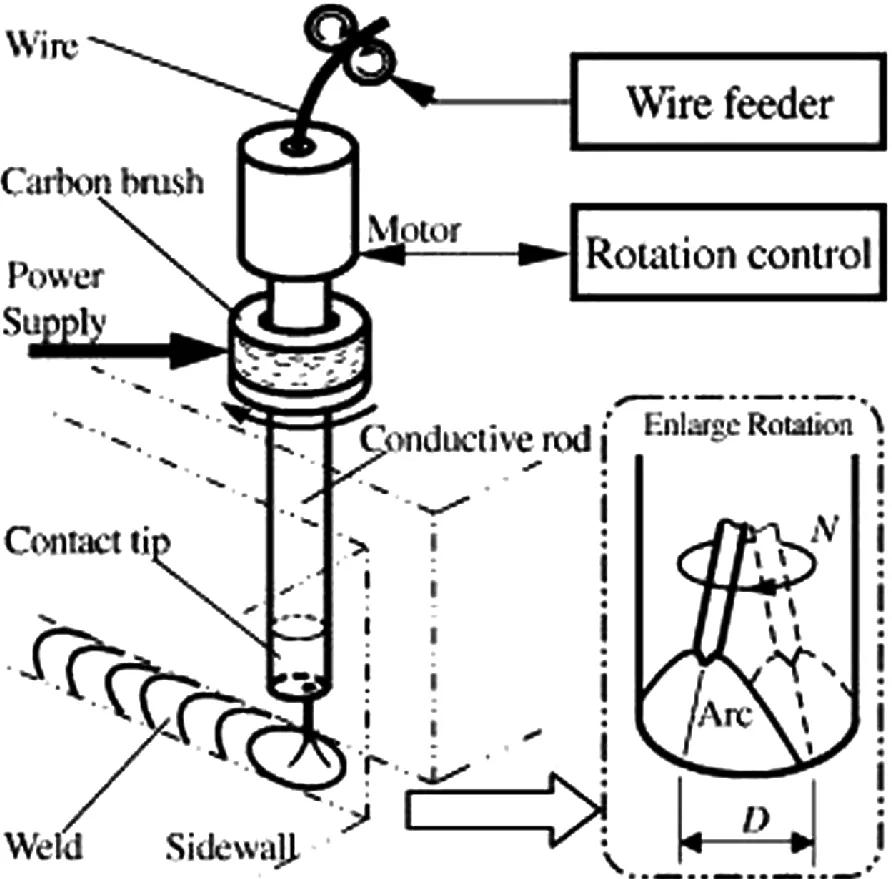 圖2 NG-GMAW焊接旋轉電弧系統(tǒng)(D:旋轉直徑;N:轉速)