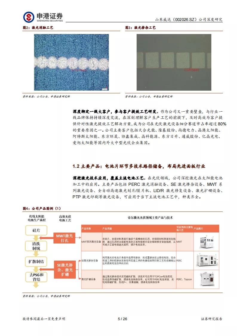 公司層面:激光應(yīng)用創(chuàng)新平臺。公司以自主創(chuàng)新激光技術(shù)為核心,提供激光加工綜合解決方案。公司理解的公司兩大核心競爭力包括:(a)創(chuàng)始人、實控人李志剛博士為國內(nèi)激光應(yīng)用領(lǐng)域領(lǐng)軍人物,強大的專業(yè)背景背書公司技術(shù)先進性;(b)深度綁定一線大客戶,在深刻理解客戶生產(chǎn)工藝的前提下,及時高效為客戶提供針對性激光提效工藝解決方案。公司激光設(shè)備產(chǎn)品可匹配當(dāng)下主流電池片技術(shù),其中,PERC 激光消融設(shè)備、SE 激光摻雜設(shè)備市占率超過 80%。公司于 2021 年 8 月成功發(fā)行 8.4 億元可轉(zhuǎn)換公司債券,募集資金將用于“高效太陽能電池激光印刷技術(shù)應(yīng)用研發(fā)項目”、“新型顯示行業(yè)激光技術(shù)及設(shè)備應(yīng)用研發(fā)項目”,在夯實光伏行業(yè)的基礎(chǔ)上進軍先進顯示面板領(lǐng)域。