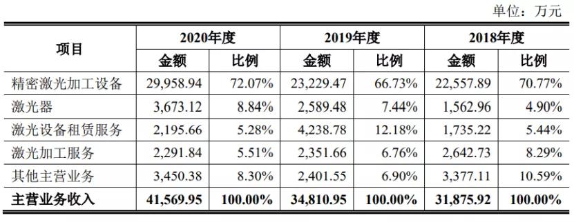 從公司產(chǎn)品發(fā)展進(jìn)程來(lái)看,德龍激光在設(shè)立之初,主要從事精密激光加工設(shè)備及激光器的研發(fā)、生產(chǎn)及銷售。2011年,根據(jù)多年來(lái)在激光精細(xì)微加工的經(jīng)驗(yàn)和客戶需求,擴(kuò)展了激光加工服務(wù)業(yè)務(wù),激光加工服務(wù)業(yè)務(wù)是公司在精密激光應(yīng)用產(chǎn)業(yè)鏈的延伸。2017年,應(yīng)客戶需求,開始提供激光設(shè)備的租賃業(yè)務(wù)。