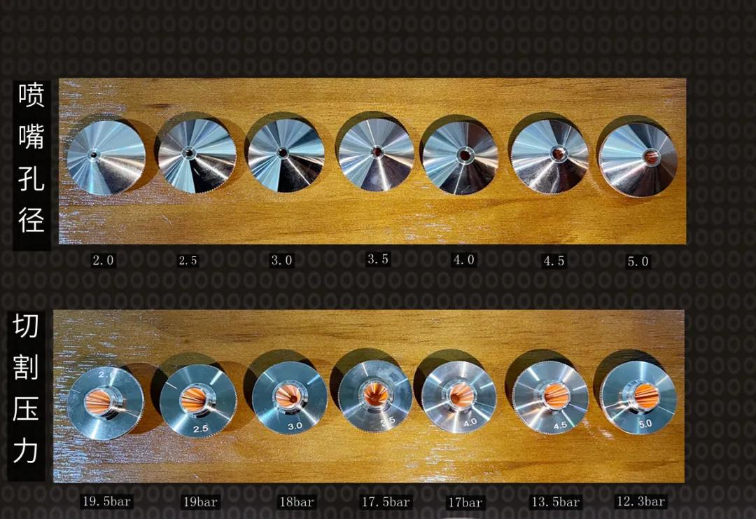 噴嘴選擇:不銹鋼厚度越厚,則選擇孔徑越大的噴嘴,且設(shè)置切割氣壓越高。