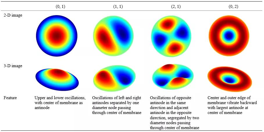 表1 四種典型的圓膜振蕩模式