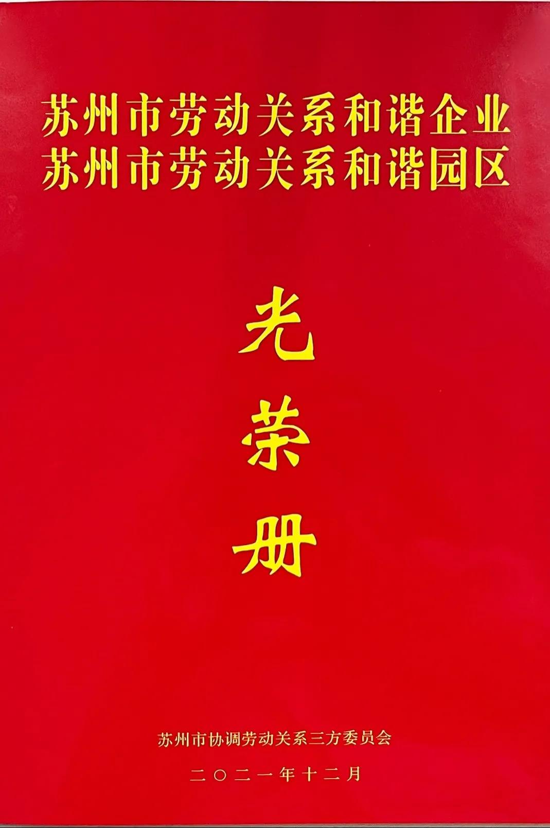 蘇州市勞動關(guān)系和諧企業(yè)光榮冊