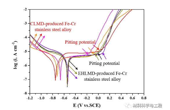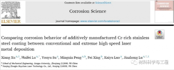 金屬材料的腐蝕失效通常起源于材料表面受到腐蝕介質(zhì)侵蝕產(chǎn)生破壞,因此材料表面的改性和強(qiáng)化涂層的制備發(fā)揮重要作用。近年來(lái),激光沉積技術(shù)發(fā)展迅猛,可以在廉價(jià)金屬基體表面制備高性能的涂層,具有很高的經(jīng)濟(jì)效益,廣泛應(yīng)用于機(jī)械設(shè)備和重要零部件的表面強(qiáng)化和損傷修復(fù)等。但是傳統(tǒng)激光沉積稀釋較大,沉積效率低,且表面粗糙度較高,需要后續(xù)車(chē)削、磨削加工才可以投入使用,限制了其在大型工程構(gòu)件的應(yīng)用的推廣。德國(guó)弗勞恩霍夫激光技術(shù)研究所提出一種全新的激光表面增材制造技術(shù)——超高速激光沉積(EHLMD),有效地解決了沉積效率和表面平整性的問(wèn)題。通過(guò)同步送粉添料方式,利用高能密度的束流使添加材料與高速率運(yùn)動(dòng)的基體材料表面同時(shí)熔化,并快速凝固后形成稀釋率極低,與基體呈冶金結(jié)合的沉積層,極大提高沉積速率,顯著改善基體表面的耐磨耐蝕性能。因此,制備具有優(yōu)良耐腐蝕性能的超高速激光沉積涂層具有重要意義。本研究中,江蘇大學(xué)的徐祥博士(第一作者)和魯金忠教授(通訊作者)等人系統(tǒng)性地從沉積層致密性、顯微組織特征和抗腐蝕性能影響機(jī)理對(duì)比分析了超高速激光沉積(EHLMD)和傳統(tǒng)激光沉積(CLMD)制備的沉積層的耐腐蝕性能。通過(guò)Micro-CT、OM、EBSD和TEM分析,分別對(duì)兩種工藝制備的不銹鋼沉積層進(jìn)行了表征,通過(guò)三電極電化學(xué)工作站對(duì)沉積層在室溫下0.598mol/L NaCl溶液中的耐腐蝕性能進(jìn)行測(cè)試。結(jié)果表明超高速激光沉積層細(xì)化的組織特征和更高的致密性形成穩(wěn)定可靠的鈍化膜,表現(xiàn)出優(yōu)異的耐腐蝕性能。相關(guān)論文以題為“Comparing corrosion behavior of additively manufactured Cr-rich stainless steel coating between conventional and extreme high-speed laser metal deposition”發(fā)表在腐蝕頂刊Corrosion Science。https://doi.org/10.1016/j.corsci.2021.109976