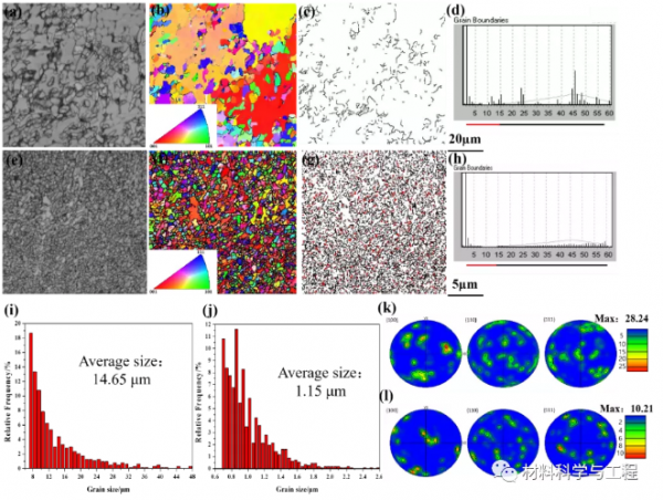 圖2 (a-d,i, k) CLMD和(e-h,j, l) EHLMD涂層近表面組織特征比較