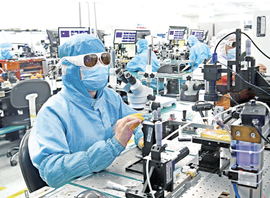 銳科激光技術(shù)人員在組裝超高功率工業(yè)光纖激光器部件。 長(zhǎng)江日?qǐng)?bào)記者高勇 攝