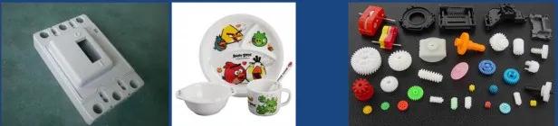 其中熱固性塑料為化學(xué)分子結(jié)構(gòu),一般是一次成型。如上左圖中開(kāi)關(guān)面板和幼兒用的碗都是熱固性塑料加工而成的,它們具有耐高溫的特性,質(zhì)地堅(jiān)硬、難以熔化,加熱后也不再軟化,過(guò)度加熱直接分解。
