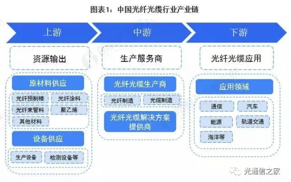 產(chǎn)業(yè)中游是光纖光纜的生產(chǎn)與解決方案的提供;