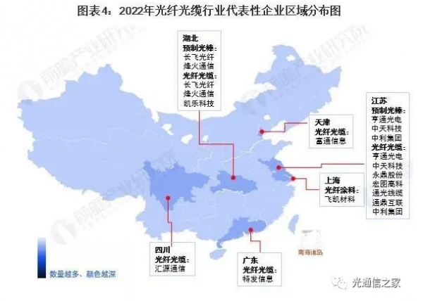 光纖光纜行業(yè)產(chǎn)業(yè)鏈區(qū)域熱力地圖:主要分布于江蘇與湖北
