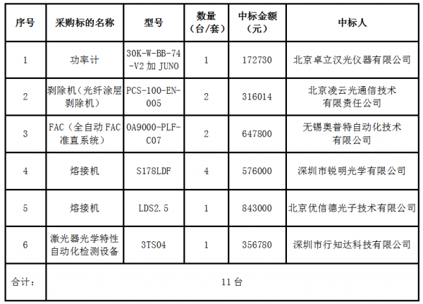創(chuàng)鑫激光超高功率光纖激光器研發(fā)及產(chǎn)業(yè)化項目設(shè)備中標(biāo)公告