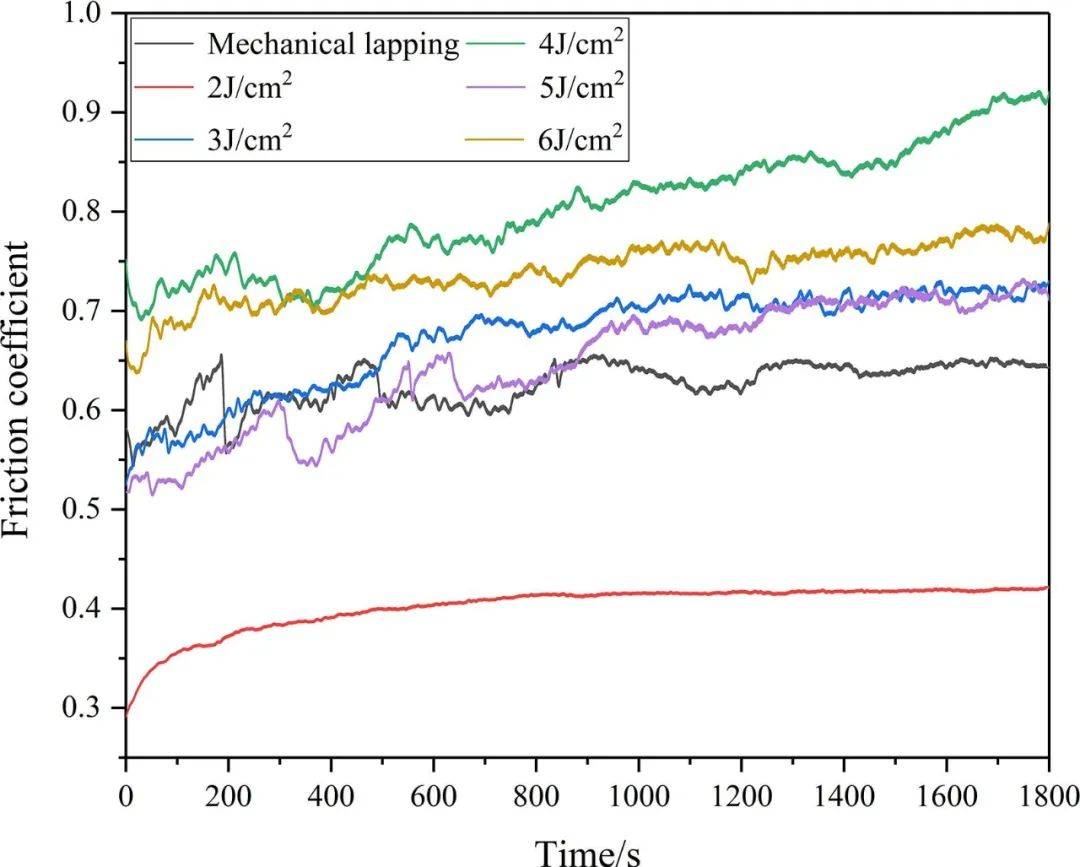 圖15 研究了不同激光能量密度下的表面微動(dòng)摩擦系數(shù)。