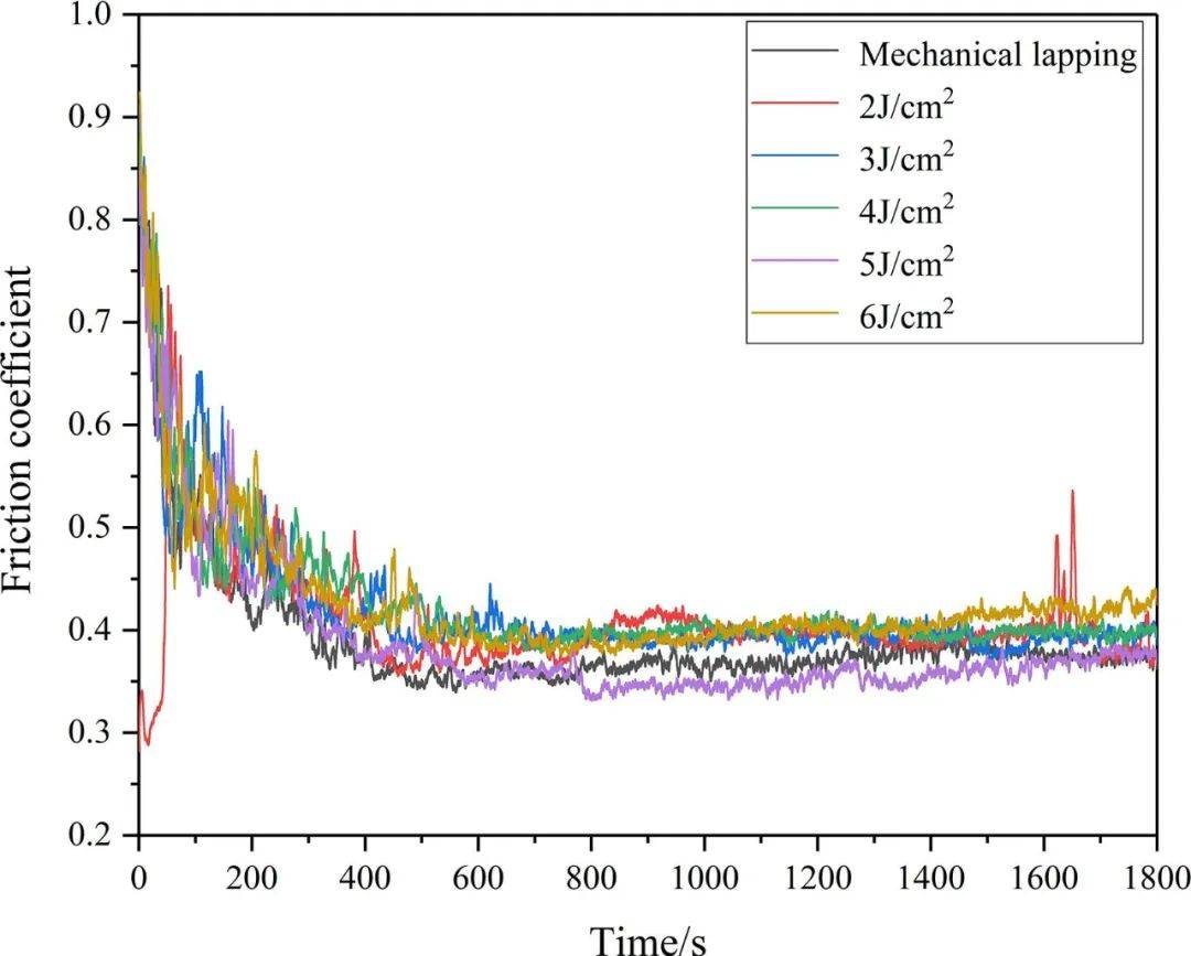 圖11 研究了不同能量密度激光清洗下的表面摩擦系數(shù)曲線。