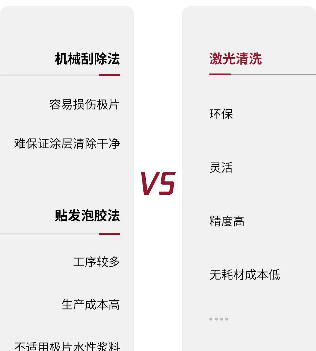 激光清洗具有環(huán)保、靈活、精度高、無耗材成本低等優(yōu)點,因此極片激光清洗正受到越來越多的關(guān)注。
