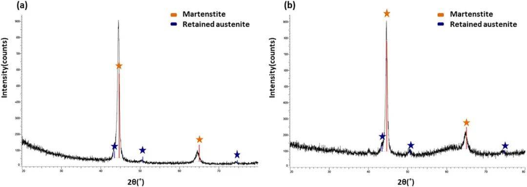 圖10.拉伸試驗之前和之后的S2樣品(a)的XRD結(jié)果顯示存在馬氏體和殘余奧氏體。