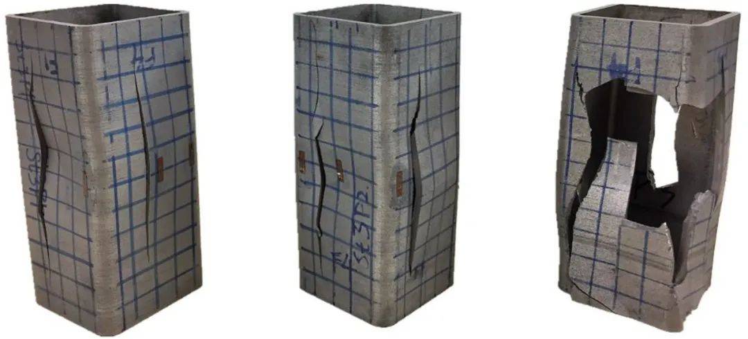 圖16 增材制造的H13柱狀空心在壓縮時不同階段的實物圖