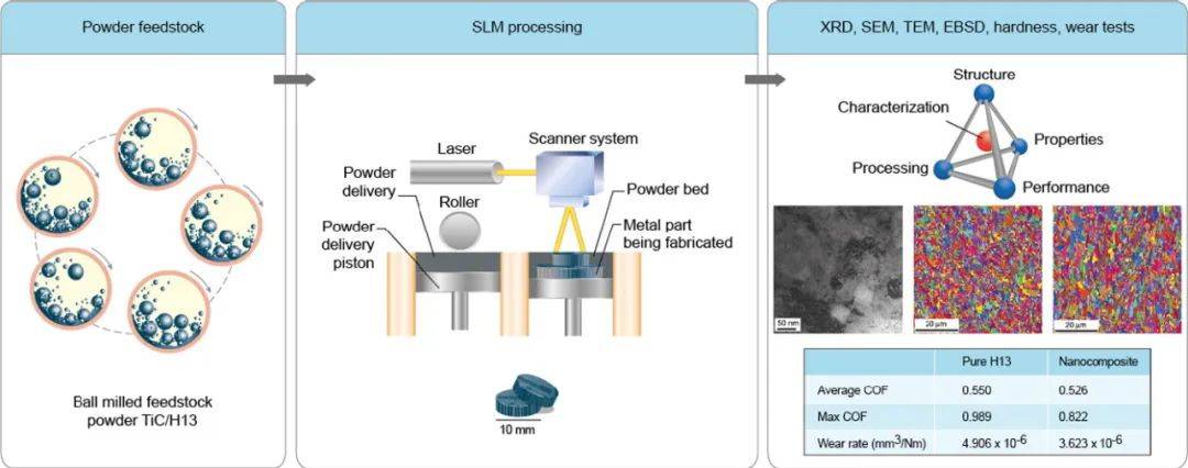 高強度H13工具鋼具有優(yōu)秀的耐磨性/耐熱性,因此廣泛用于模塑、熱壓成型和壓鑄材料。隨著對H13工具鋼產(chǎn)品更復雜設計的需求,傳統(tǒng)的制造方法如鑄造或鍛造工藝在設計復雜性方面有其局限性。隨著最近金屬增材制造技術(shù)的改進,打印H13工具鋼已被積極研究。選擇性激光熔化(SLM)是粉末床熔化工藝之一,是以最少的后處理實現(xiàn)復雜設計近凈形制造的高精度候選工藝之一。在SLM工藝中,打印金屬零件的機械性能高度依賴于復雜的打印參數(shù),因此工藝優(yōu)化對于成功制造H13工具鋼至關重要。