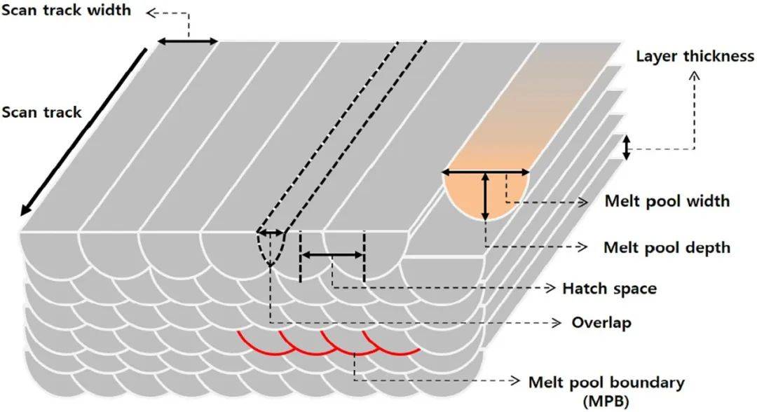根據(jù)重疊情況,陰影空間決定孔隙尺寸、孔隙形狀和孔隙度。當開口空間足夠窄時,重疊區(qū)域變小,導致致密的低孔隙率微結(jié)構(gòu)。太大的艙口空間會增加尺寸和孔隙率的體積分數(shù)。層厚會直接影響表面粗糙度和內(nèi)部微觀結(jié)構(gòu),因此它幾乎固定在20-40微米的范圍。