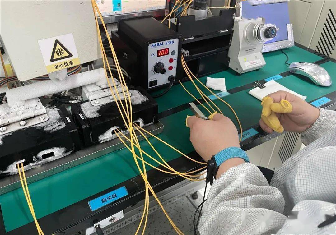 華工正源生產(chǎn)一部車間內,技術工人手中的光模塊,看起來和一個普通U盤差不多大小,其內部集成了激光器、探測器、光電芯片等眾多精密部件。在這里,每一支光模塊都經(jīng)過高低溫循環(huán)、老化測試等多項可靠性認證,再到品質檢驗、最終出貨……