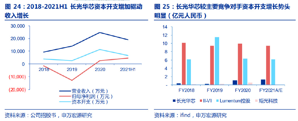 而長光華芯所處行業(yè)正在國產(chǎn)化替代,且產(chǎn)品線齊全、高附加值、增速更快(例如,證據(jù)為 2019-2020 年收入增速為 50%/78%)。