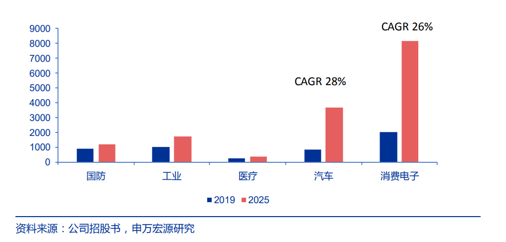 根據(jù)公司招股書測算,2020 年全球高功率半導體激光芯片市場規(guī)模約為 18.3 億元人民幣。