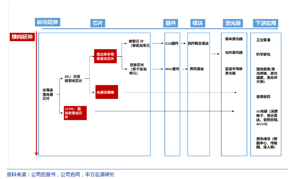 從半導體激光芯片1出發(fā),橫縱向擴展業(yè)務布局。