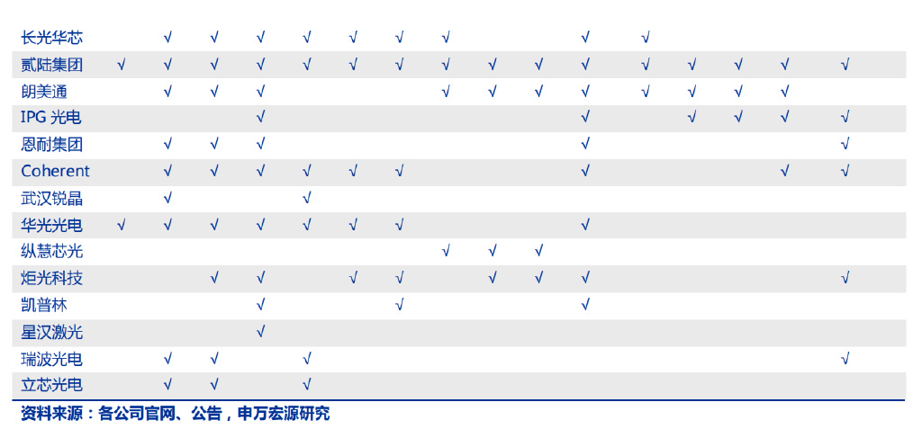 反觀上游高功率半導體激光芯片等核心元器件仍依賴進口,通過下游帶動上游,上游芯片環(huán)節(jié)的國產(chǎn)化將逐步展開。